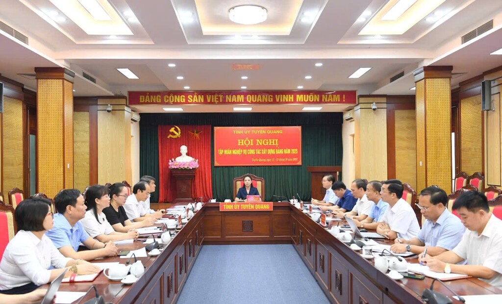 TGDV - Ngày 11/10, Tỉnh ủy Tuyên Quang tổ chức Hội nghị tập huấn nghiệp vụ công tác xây dựng Đảng năm 2025, nhằm nâng cao trình độ, kỹ năng cho đội ngũ cán bộ làm công tác tham mưu, giúp việc cấp ủy các cấp. Hội nghị được triển khai theo hình thức trực tiếp kết hợp trực tuyến, với sự tham dự của đại biểu đến từ các cơ quan tham mưu, giúp việc Tỉnh ủy, các đảng ủy trực thuộc và đảng ủy các xã, phường trên địa bàn tỉnh.