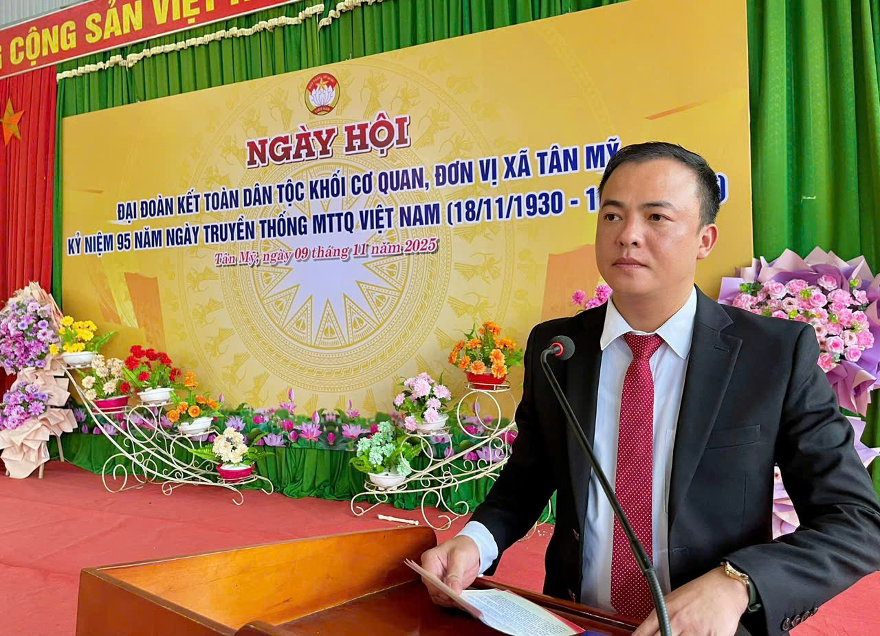 Phát biểu chung vui với Ngày hội, đồng chí Hoàng Trần Trung – Bí thư Đảng ủy xã, đã ghi nhận các thành tích đạt được và định hướng những nhiệm vụ trọng tâm với tầm nhìn phát triển mới. Đồng chí nhấn mạnh tinh thần Đại đoàn kết là nền tảng để Tân Mỹ đổi mới mạnh mẽ theo mô hình chính quyền địa phương hai cấp, hướng tới một Tân Mỹ phát triển với tầm nhìn dài hạn và lấy kết quả cùng sự hài lòng của Nhân dân làm thước đo cho mọi hoạt động.